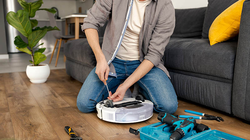 Su alcuni aspirapolvere, e comunque sui robot aspirapolvere, è necessario rimuovere il coperchio con un cacciavite prima di poter accedere alle ruote.